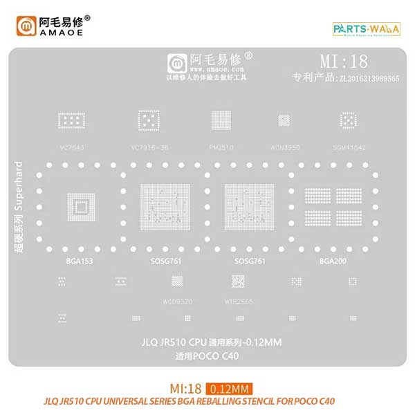 Amaoe MI:18 JLQ JR510 CPU Universal Series BGA Reballing Stencil for POCO C40